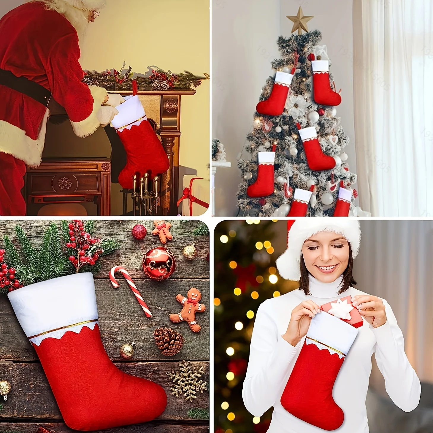 12pcs/Pack Christmas Socks Gift Bag Big Red Socks White Gold Thread Christmas Socks Non woven Light Plate Socks