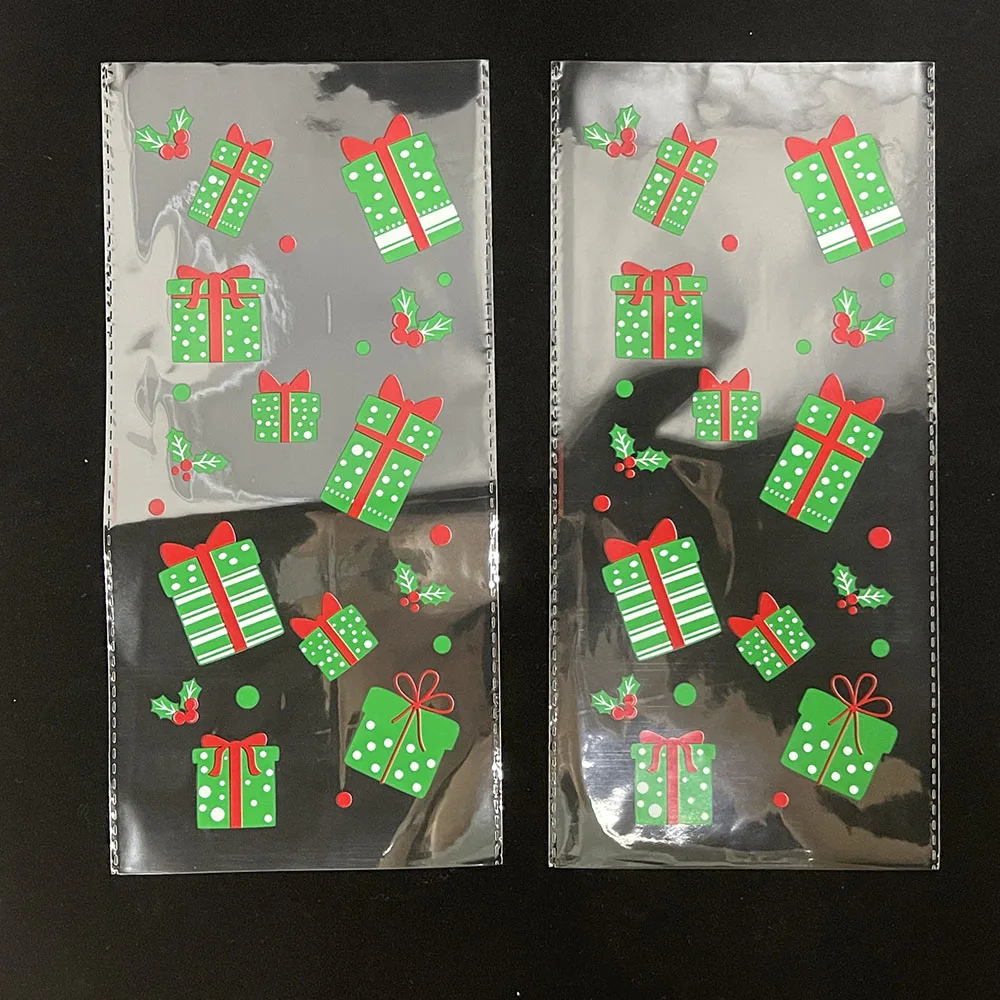 50pcs Christmas Transparent Plastic Gift Bag Candy Biscuit Cookie Snacks Baking Bag New Year Merry Christmas Party Decoration