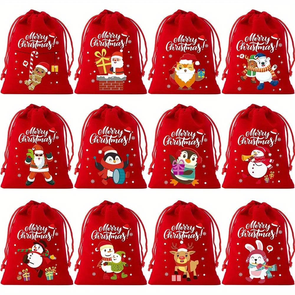 8/12/30pcs Christmas Velvet Drawstring Gift Bag , Suitable for Christmas, Halloween, Party Gifts, Weddings, Birthdays