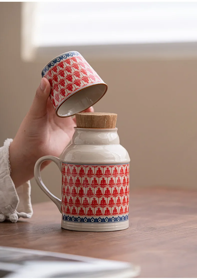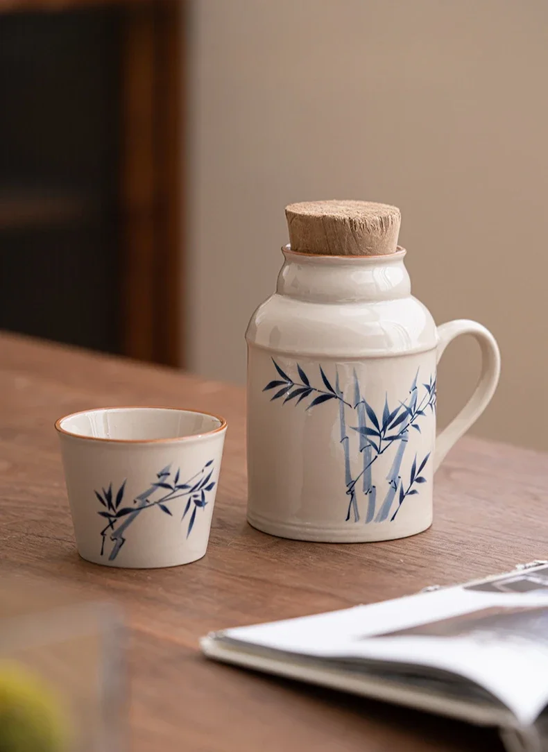 Ceramic Mugs with Cork Stopper Thermoses Handgrip Water Bottle Large Capacity Insulated Cup for Hot Tea Coffee Classic Drinkware